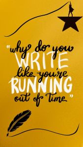 When I first heard the song “Non-Stop” in Lin Manuel-Miranda’s Hamilton, a particular line struck me – “Why do you write like you’re running out of time? Write day and night like you’re running out of time?“ I LOVED IT!